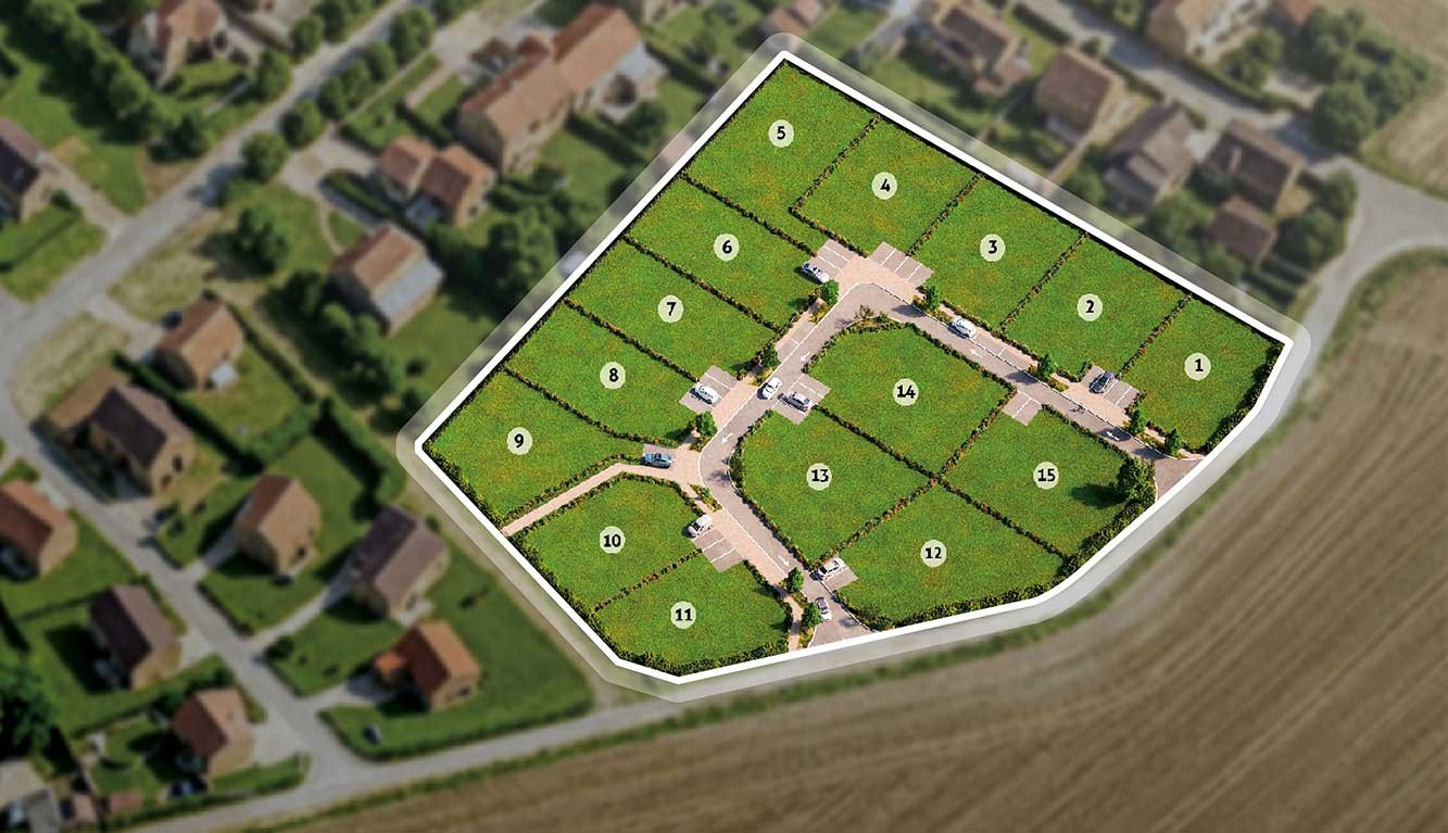15 terrains viabilisés situés dans un environnement calme et verdoyant. D'une superficie comprise entre 537 m2 et 709 m2, les terrains sont proposés à partir de 64 900 € et vous permettent de construire librement la maison qui vous ressemble.