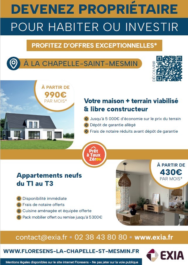📢 Exia - Offres commerciales exceptionnelles Quartier FLoresens à La Chapelle-Saint-Mesmin (45) ! 🎉